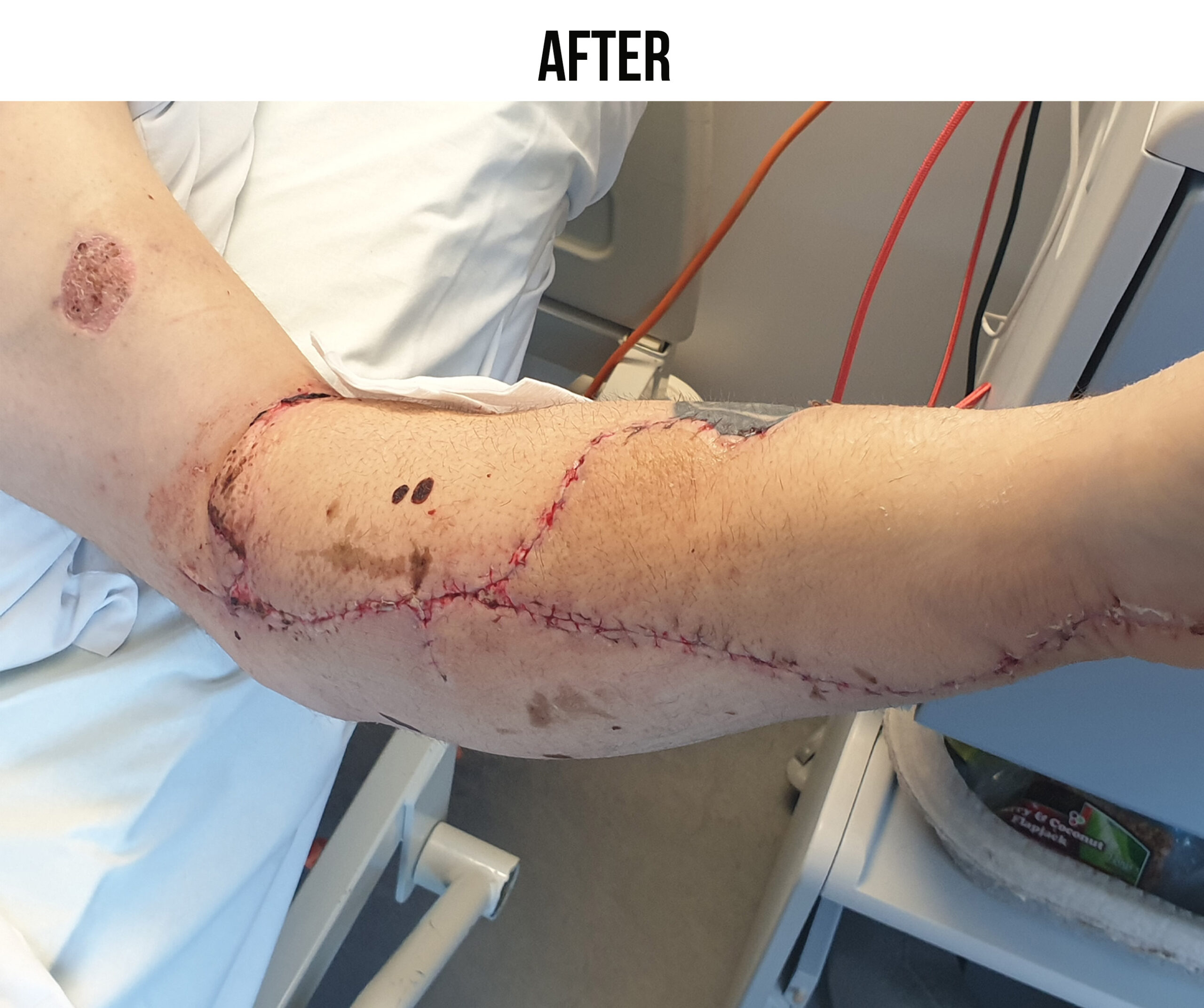 4 operations were undertaken to stabilise me and debride my wounds. Followed by a 5th operation lasting over 12 hours which saw the plastics surgeon reconstruct my left arm from the elbow down with tendon, nerve, and skin grafts.